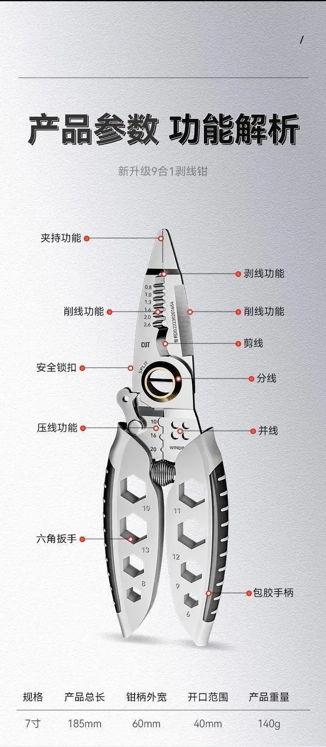 أداة تجريد الأسلاك المهنية متعددة الأغراض ، كماشة كهربائي مجعد ، تجريد الأسلاك ، قواطع الكابلات ، ترقية جديدةمن المصنع إلى الزبون مباشرة