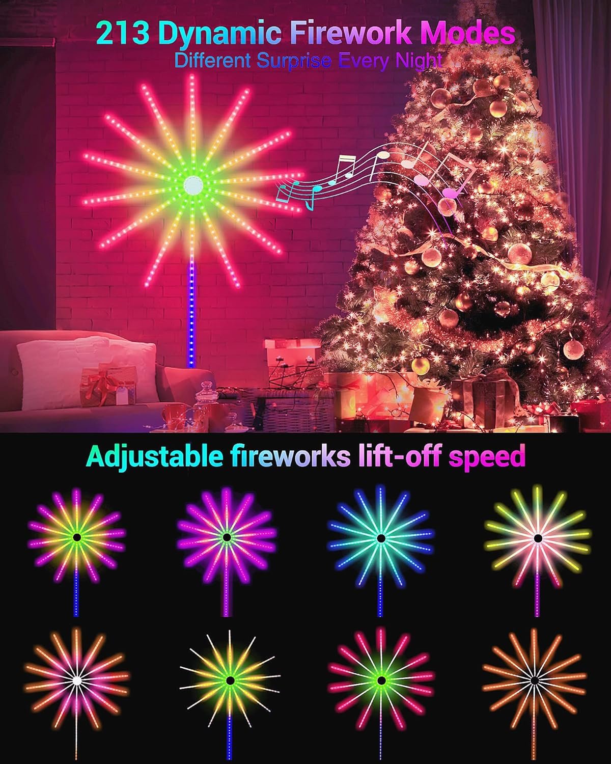 🎇🎅【ترقية جديدة لأضواء الألعاب النارية LED مع تأثير الإطلاق】 – يمكن لأضواء شريط LED الفريدة على شكل ألعاب نارية وأكثر من 213 تأثيرًا ديناميكيًا محاكاة تأثيرات الألعاب النارية الواقعية. إجمالي 11 شريط إضاءة مقاس 19.69 بوصة وشريط إضاءة واحد مقاس 59 بوصة متصلان معًا من خلال لوحة محورية. يمكن لشريط الإضاءة LED الناعم هذا تشكيل أي شكل تريده والتكيف مع أي مشهد. مجموعة متنوعة من الألوان والخيارات الديناميكية تجعل أضواء الألعاب النارية الذكية ديكورًا رائعًا للغرفة، وهي هدايا مضحكة مثالية لعائلتك وأصدقائك وأحبائك!